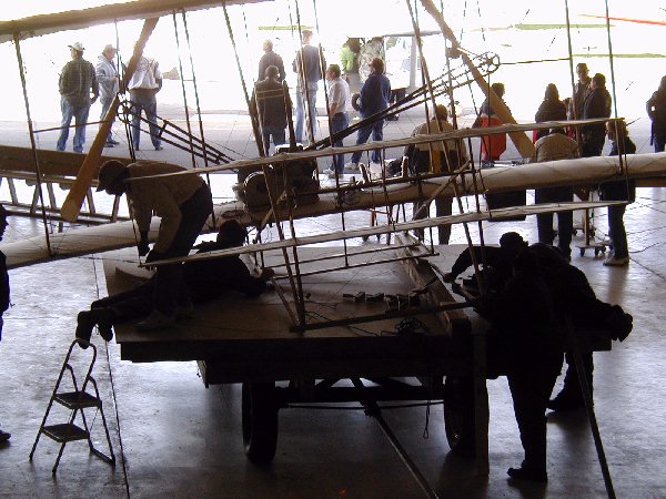 ![]() 29. Setting the Flyer onto the launch rail had us all wondering how the Wright brothers and their small crew of men handled the weight, the bulk and frailty of the Flyer on that frigid day in December. |