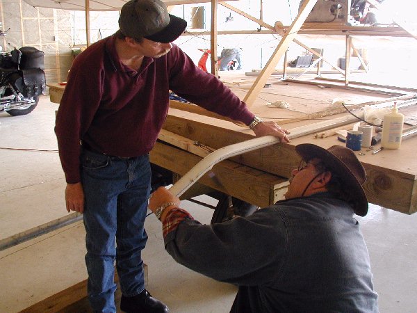 ![]() 17. Ken Kirincic and Tom Norton look over the position of the launch rail. |