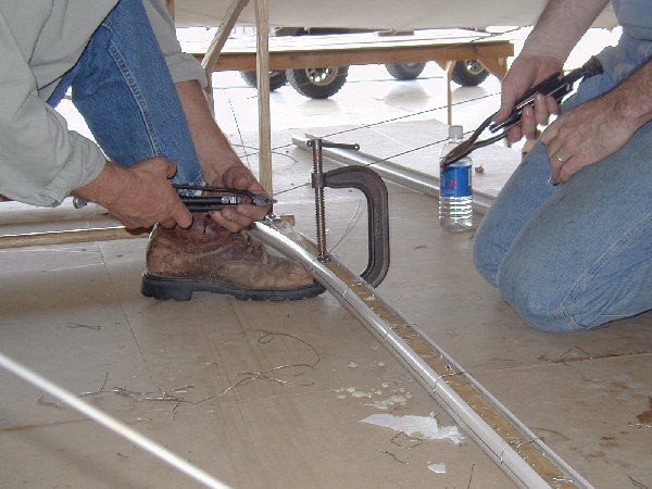 ![]() 9. For the next few hours while the glue cured the team discussed a new method for not only strengthening the skids but also making them slicker for the grassy landing surface we'll be using. |