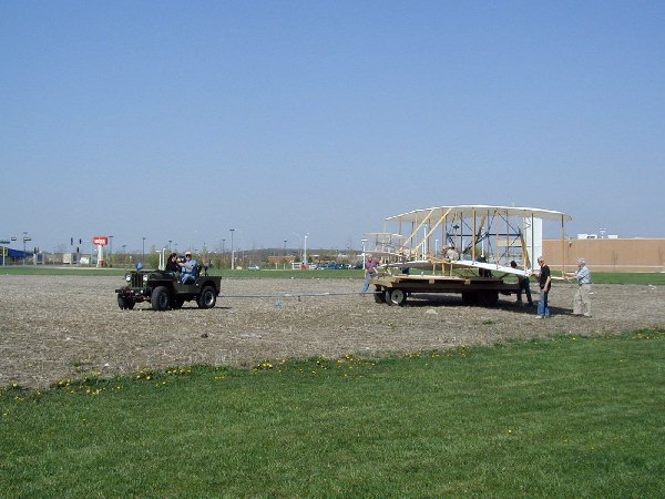 ![]() 25. Back at the hangar the "Spirit of Glen Ellyn" is being towed out to the site for its historical journey. |