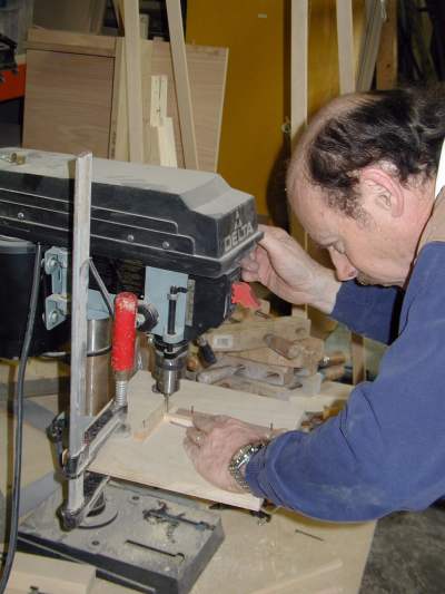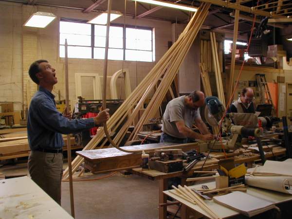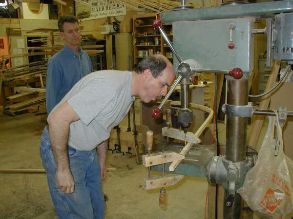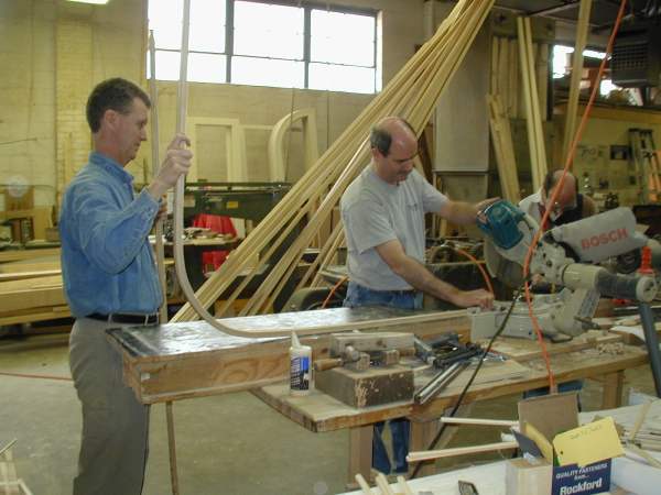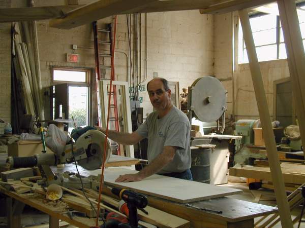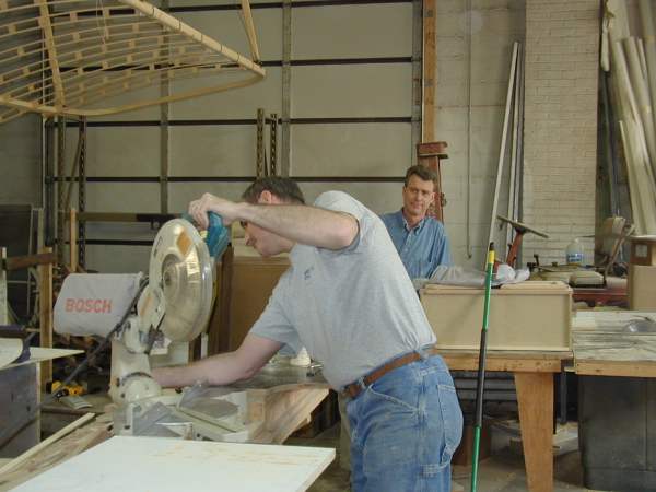 ![]() 3. Mike gets the hang of the compound miter saw. |