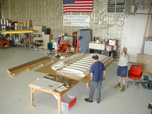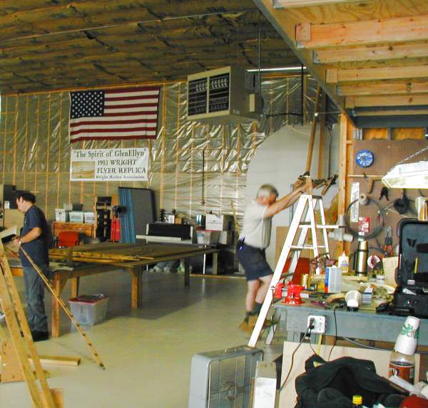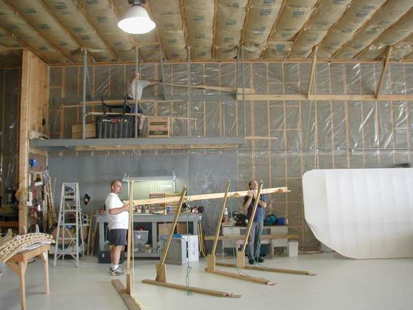 ![]() 23. Ted sorts out parts in the loft while Mark and Bill disassemble a wing jig. |