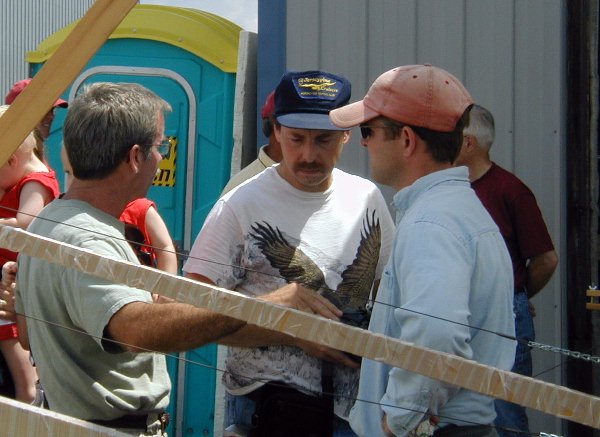 ![]() 7. With the Flyer in position on its launch rail, Ken discusses the first attempt with the crew. |