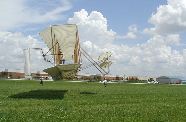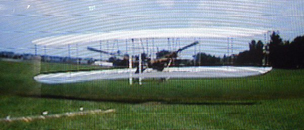 The Wright Redux Association crew flew two more successful flights today. Both of our pilots Ken Kirincic and Mike Gillian can both log-in another 12 seconds or so of air time in our 1903 Wright Flyer Replica. It started as a sunny, breezy, beautiful day for flying. We have some great images here for you to see. One is captured from a TV screen video. |