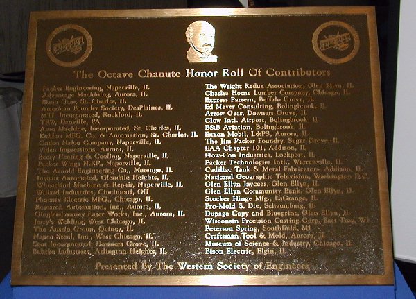 7. Packer Engineering presents a bronze plaque honoring the major contributors to the building of the 1903 Wright Flyer replica. |