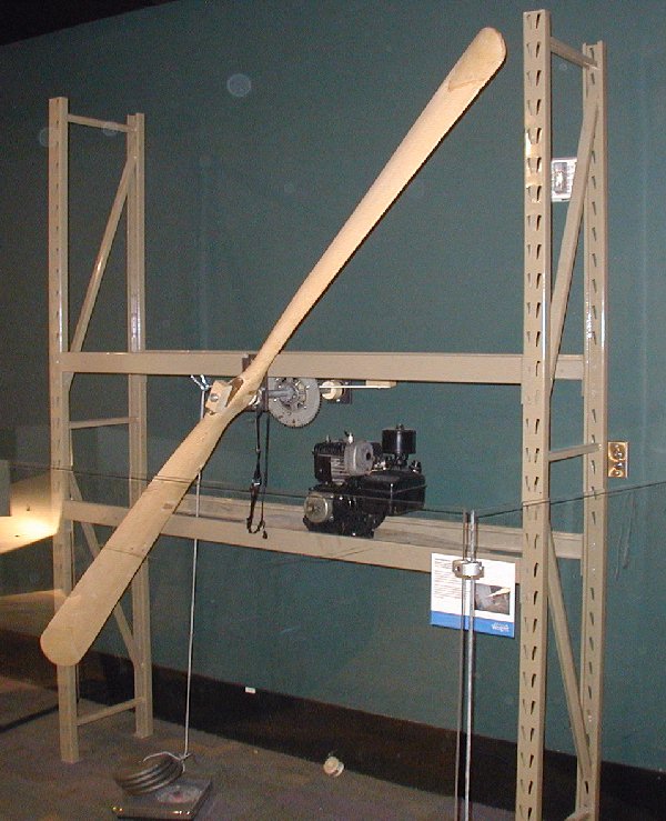17. This exhibit shows the test stand built by Ted Craft, which was used for testing the shape, thrust and spin characteristics of the props carved by Mark Miller. |