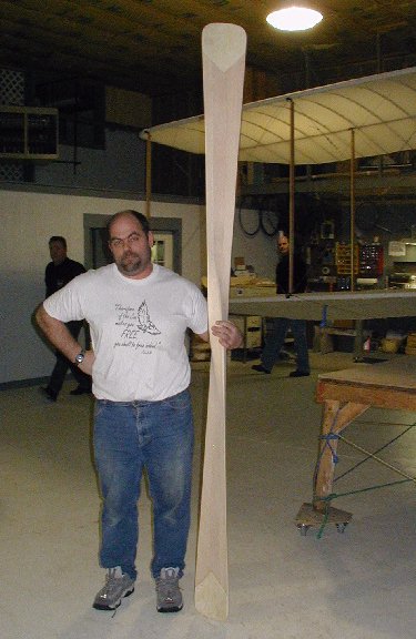 ![]() 4. Mike and Turk raise the prop to be mounted onto the prop shaft. |