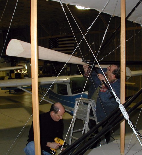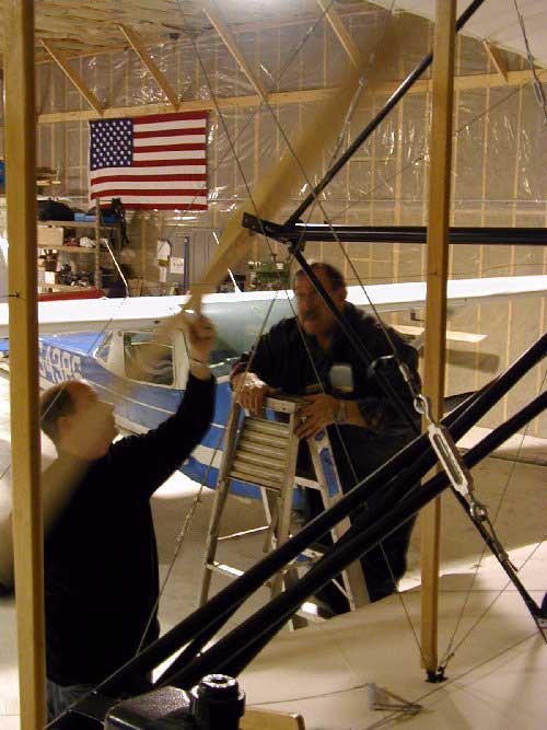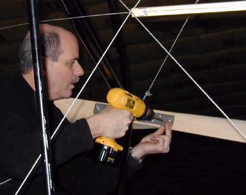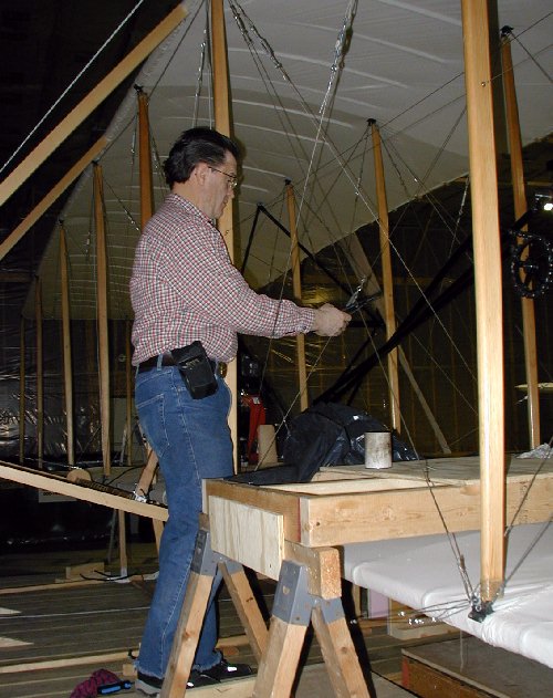![]() 10. Chuck Clendenin ensures truss wires are secured and applies safety wire where needed. |