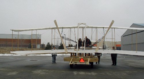 ![]() 13. The Spirit of Glen Ellyn is rolled outside and given one last check before starting the engine for the first spin of the final props. |