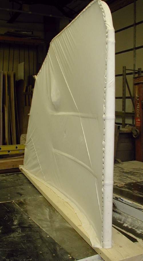 ![]() 8. Cording is wrapped over the fabric's trailing edge and around the rib tip. |