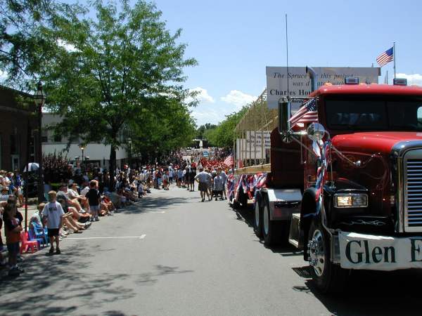 7. Tom Norton greats the crowd.The Flyer turns onto Main street. |