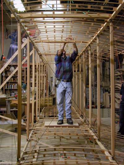 1. Bill steps into the center section to make some adjustments. |