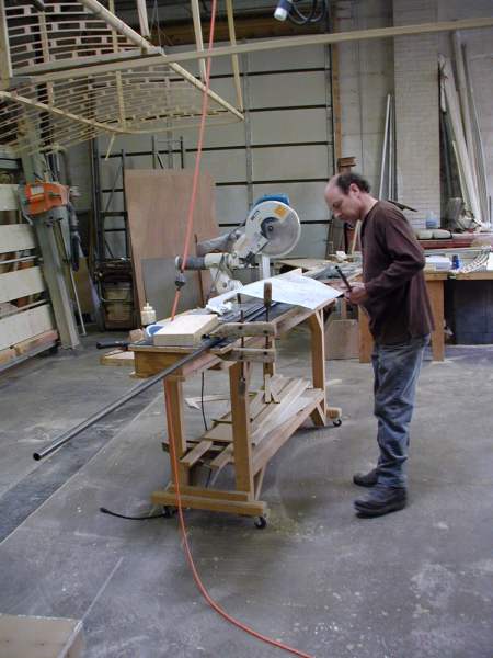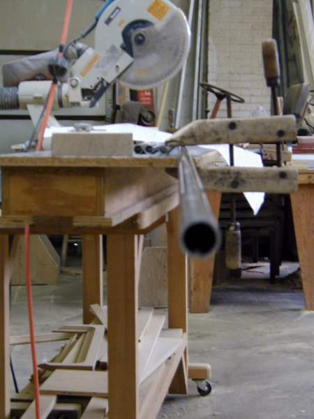 Bill starts to work on measuring, cutting and shaping pipe for the prop tube supports.