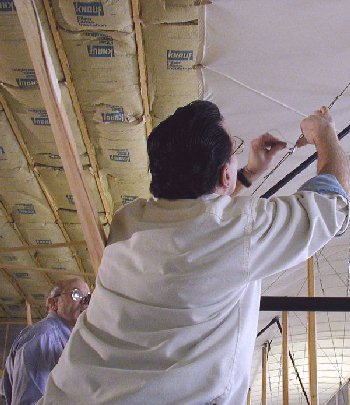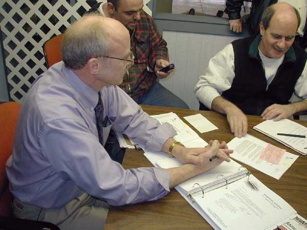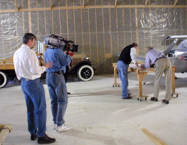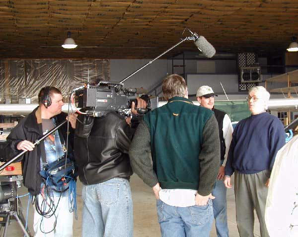 4. The History Channel's cameras start rolling as Mike Perry and FAA inspector Tom Soerens go over the Builder's Log and blue prints as the inspection begins. |