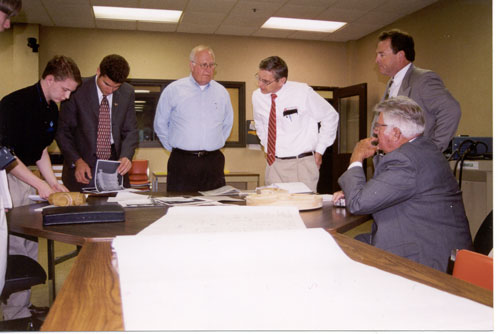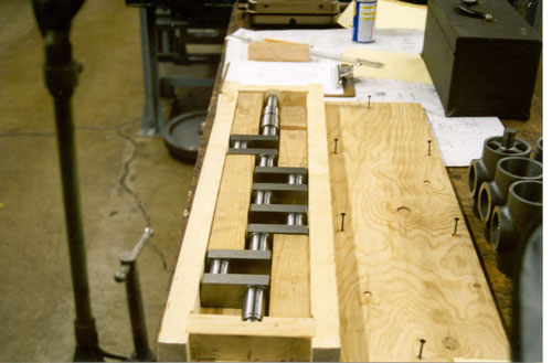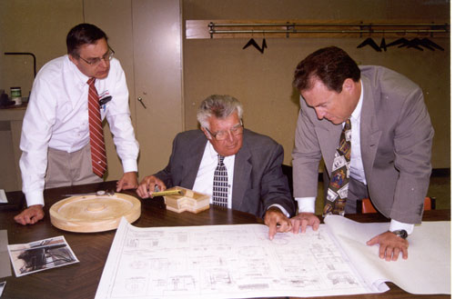 ![]() 2. Joe Santner (AFS), Dr. Ken Packer (P.E.) John Nowicki (P.E) -- Verifying the flywheel and combustion chamber core box wood patterns with the drawings. |