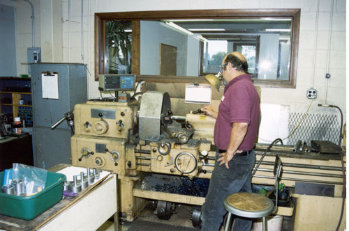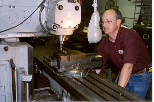 ![]() 4. Tom Kuhn (P.E.) -- Tom is machining the valve seats at Packer Engineering. |