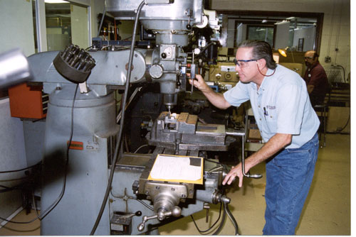 ![]() 6. Val Skawinski from Packer Technologies International (PTI) -- Val is machining the ignition parts at Packer Technologies International, in Lombard, Illinois. |