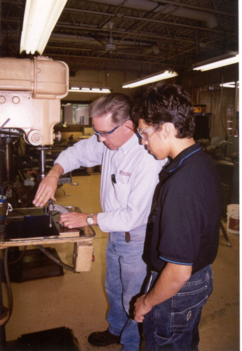 ![]() 8. Gary Hansen (P.E.) and Tom Morrison (STEP) -- Gary is teaching Tom how to setup the machining equipment. |