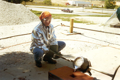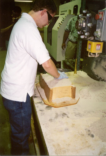 ![]() 17. Jamey Fenske (STEP) -- Jamey is removing the excess sand from the combustion chamber flask. |