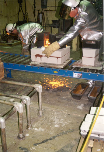![]() 23. American Foundry Society (AFS) -- Pouring the molten metal into the flywheel mold. |