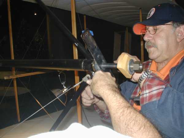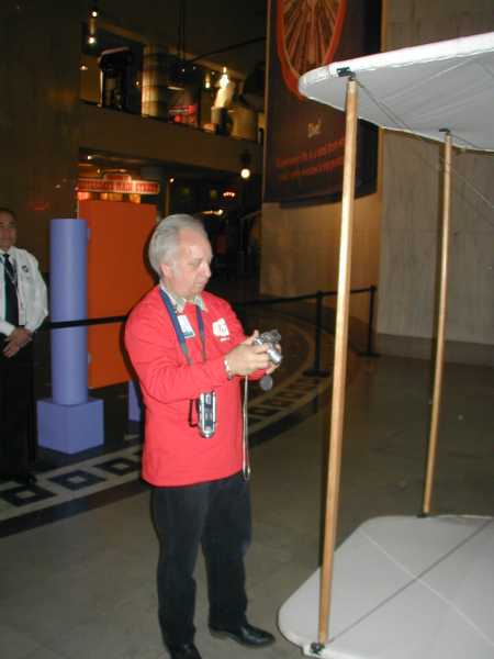 ![]() 59. Ken Lapi takes some final photos of the completed Flyer. Be sure to see the DVD he made of videos he and others shot over a two year span. It includes the Flyer's assembly, first lift, first flight, final flight and the engine's first start-up. |