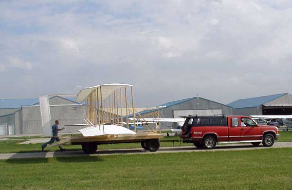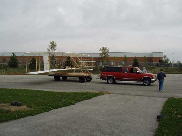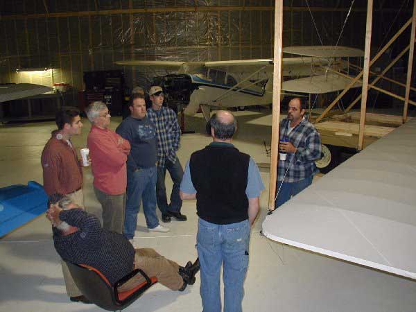 ![]() 1. The Wright Redux and Packer Engineering crews gather to discuss the day's plans for testing the "Spirit's" lift capabilities. |