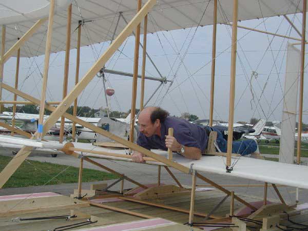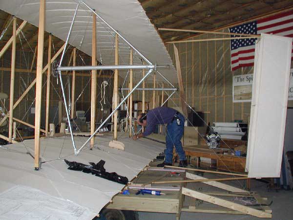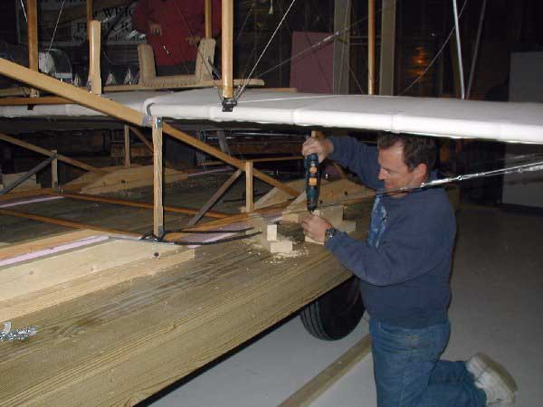 ![]() 3. Bill Mumford of Wright Redux secures the prop tubes. |