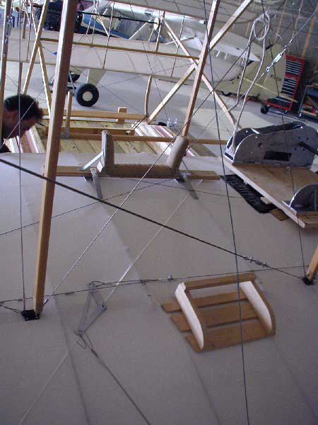 ![]() 5. The pilot's position sits empty for now. Even the slender Orville and Wilbur must have found it tricky to weave themselves through the web of trusses prior to taking position. |