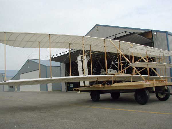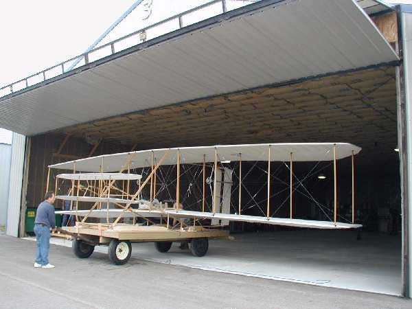 ![]() 7. The "Spirit of Glen Ellyn" rolls out into the fresh air for the very first time, dressed in her finest cotton muslin and wired for flight (the crew is wired too). |