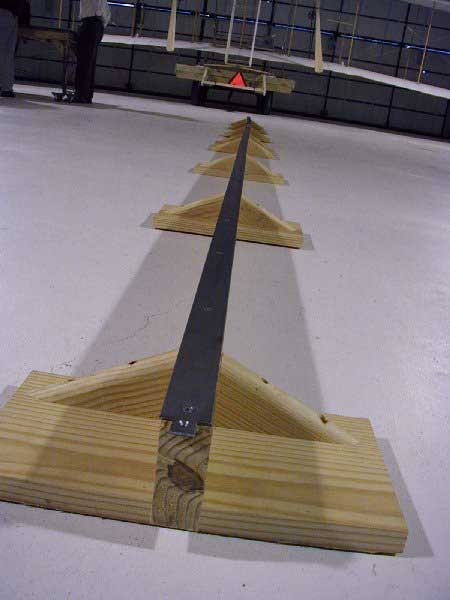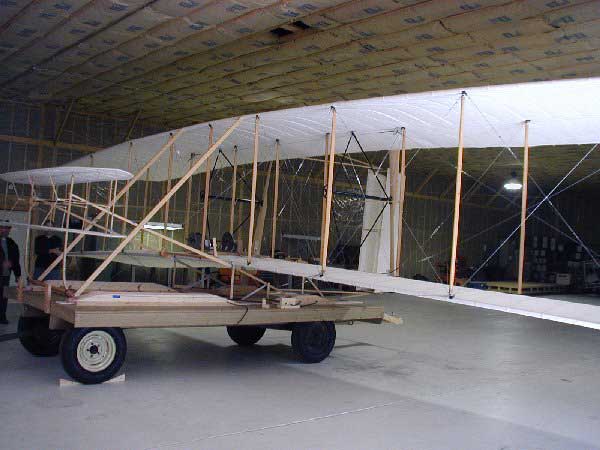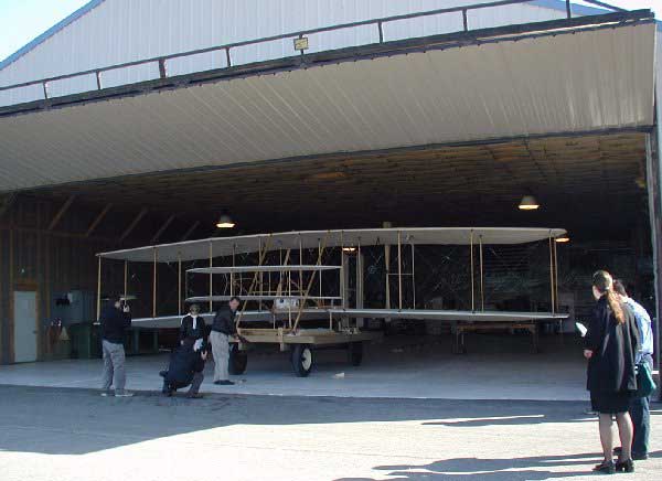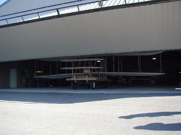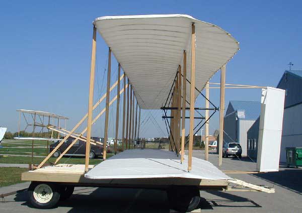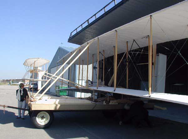 ![]() 9. A portion of the launch track to be used for the 100th anniversary flight sets in position behind the Flyer. |