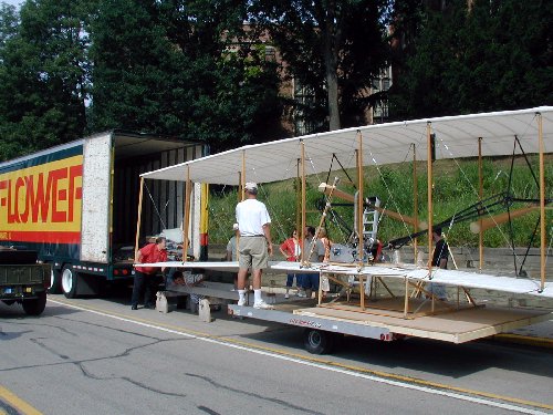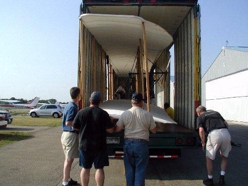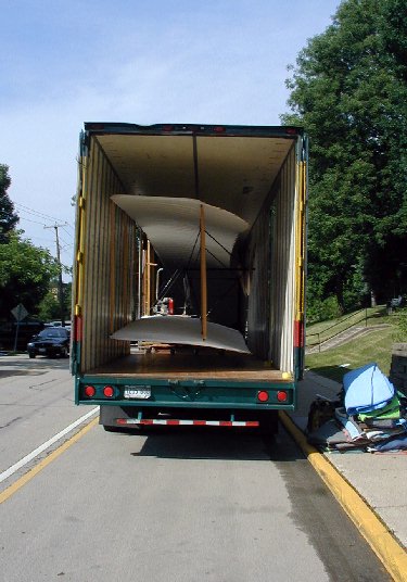 ![]() 5. Gingerly moving the wings into the trailer, they fit with only inches to spare. |
