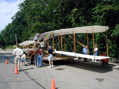 ![]() 1. The "Spirit of Glen Ellyn" is pulled from the hangar to prepare for her ride to Glen Ellyn. |