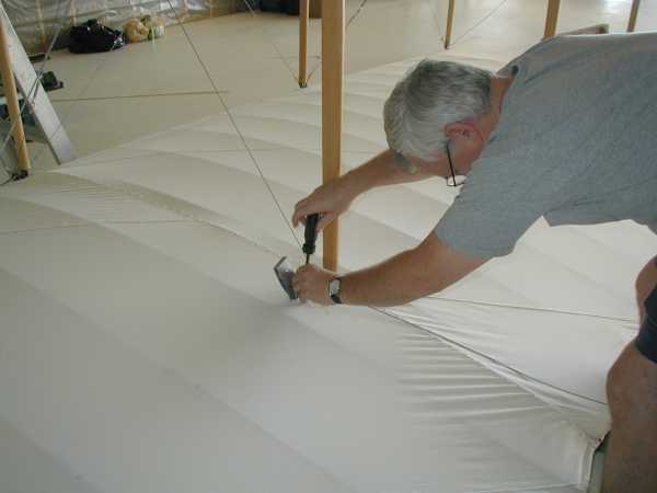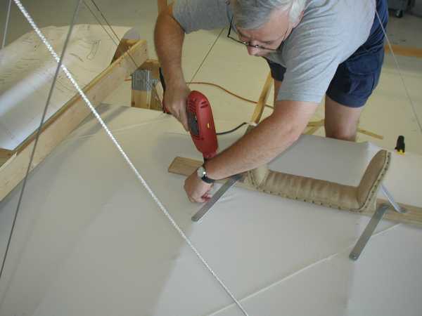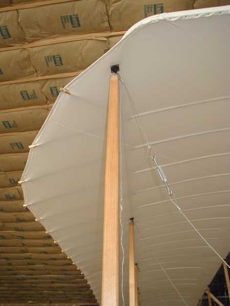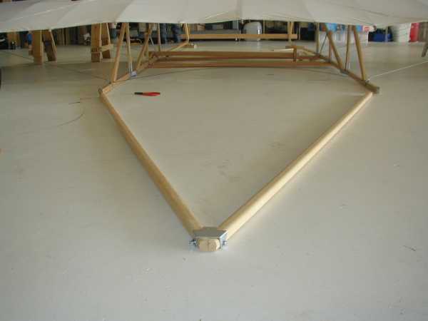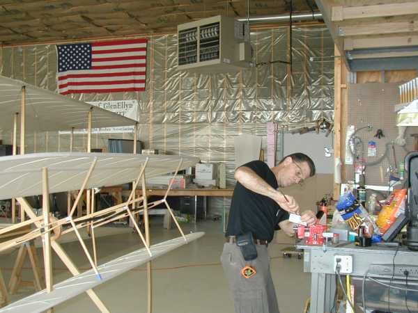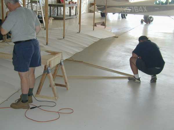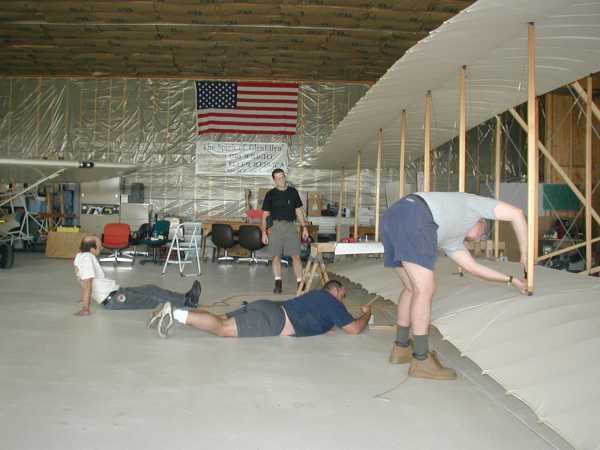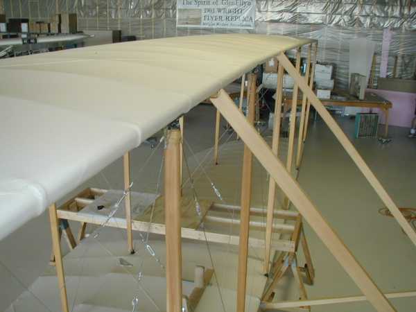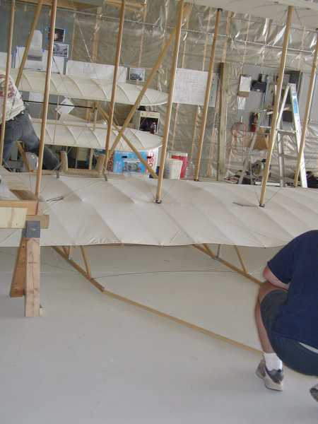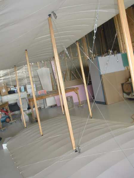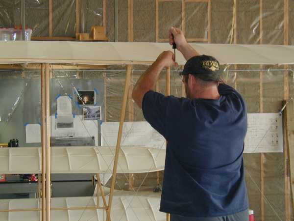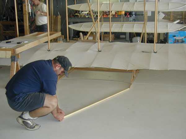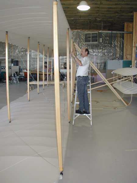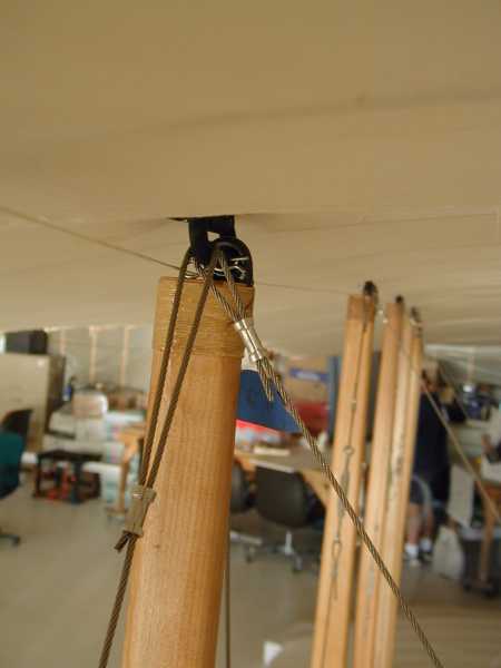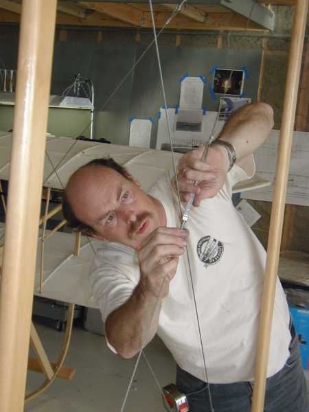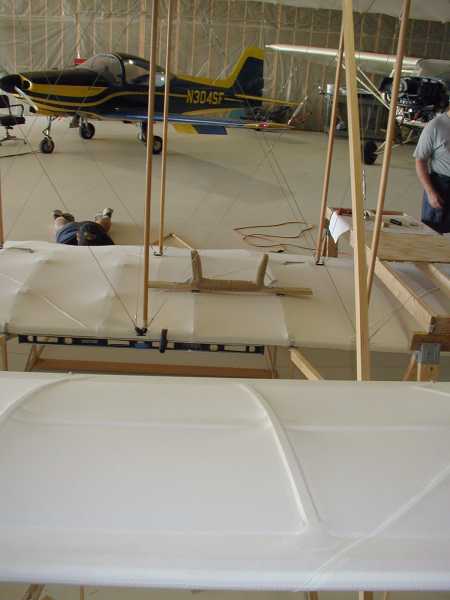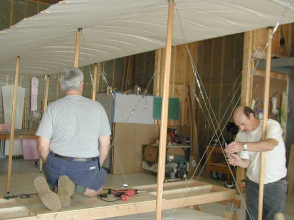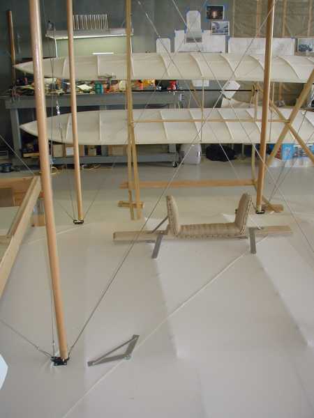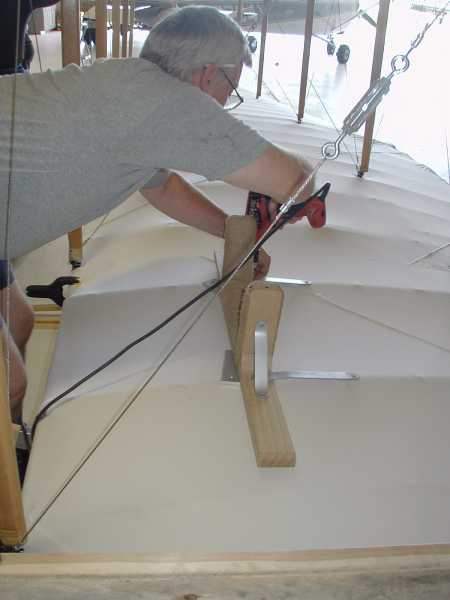 Today we install the wing warping system with its many cables and pullies. |