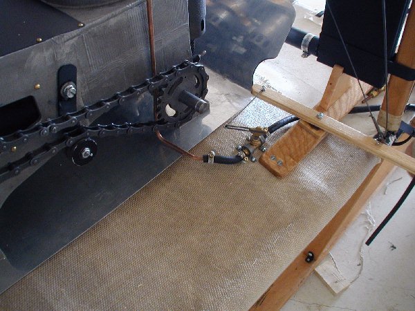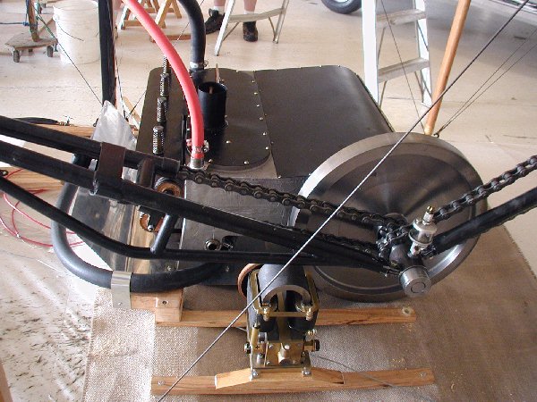 ![]() 9. John Nowicki removes the engine cover to lubricate the insides. There is no oil tank or pump. |