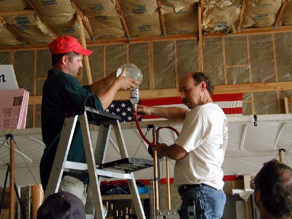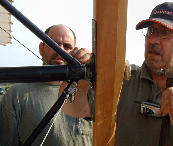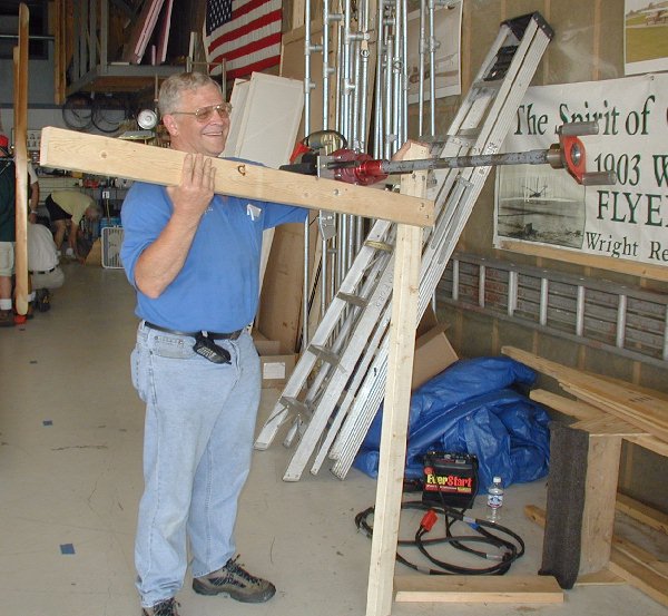 ![]() 8. Ken Kirincic and Bill Mumford add water to the water tank. (I wonder if the boys had a step ladder out on the dunes in 1903.) |